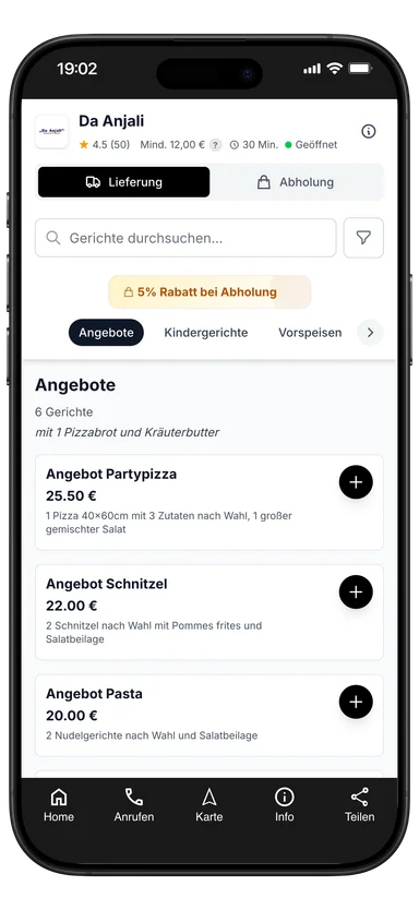 1 Pizza 32x49cm mit 4 Zutaten nach Wahl